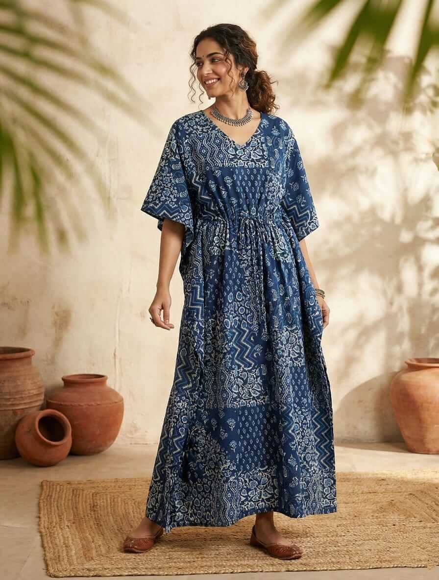 Blue Patch Print Kaftan