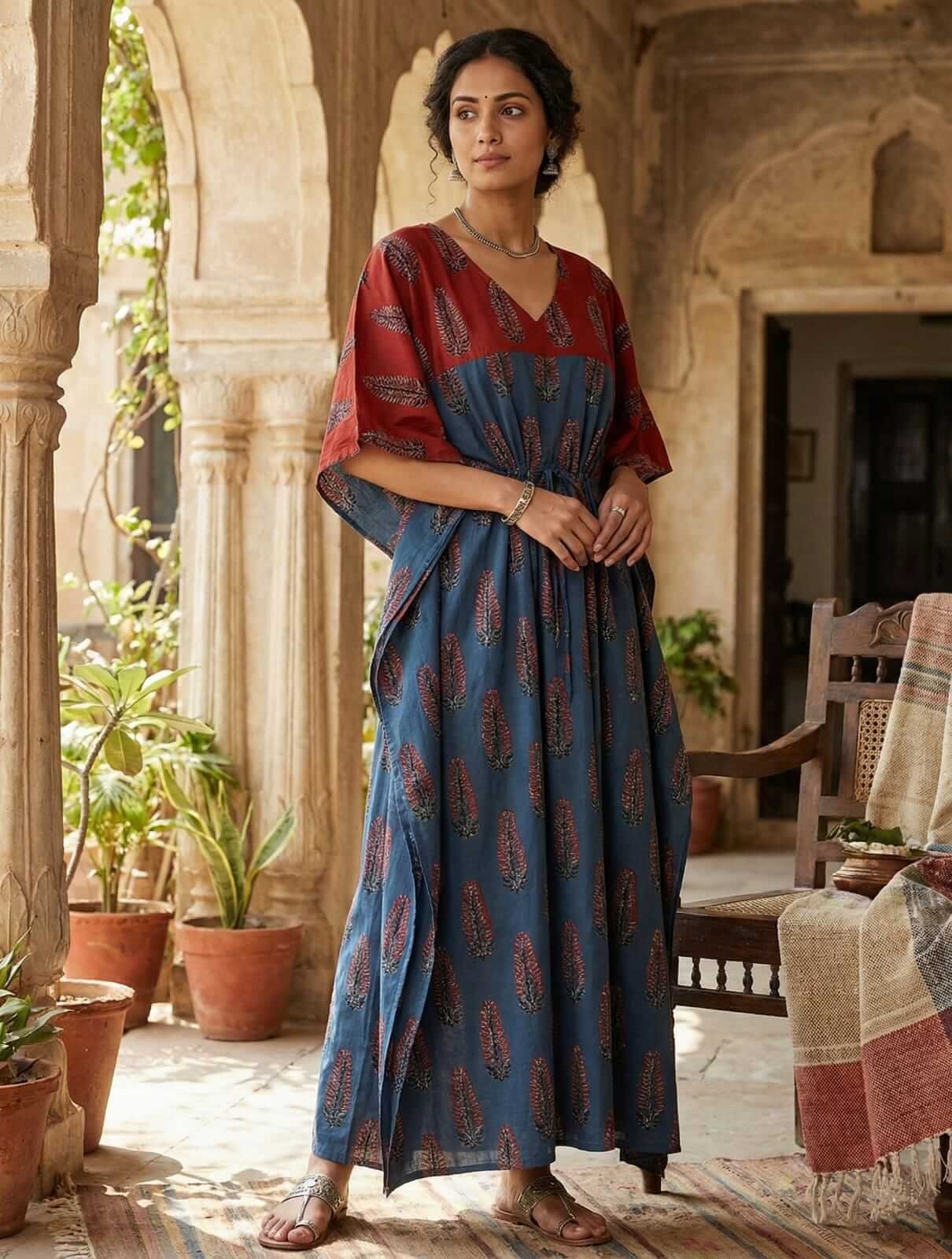 Dual Tone Buta Print Kaftan